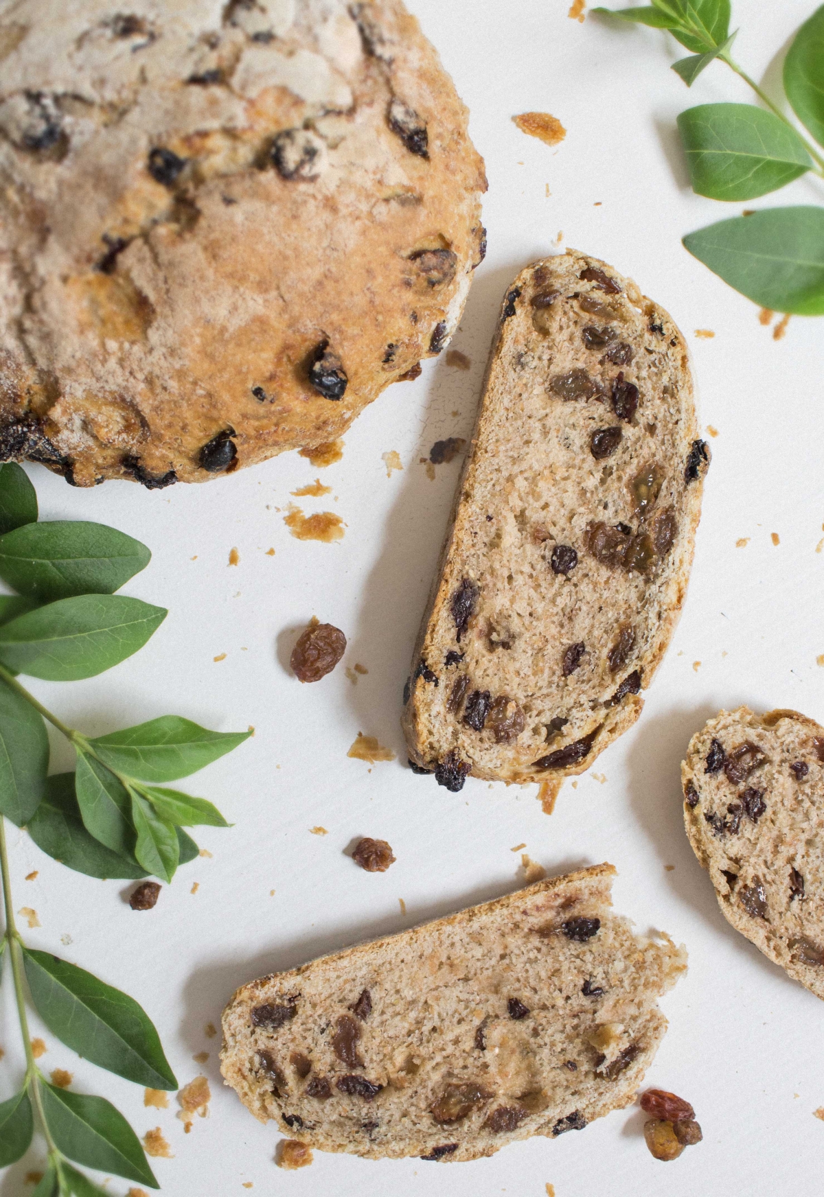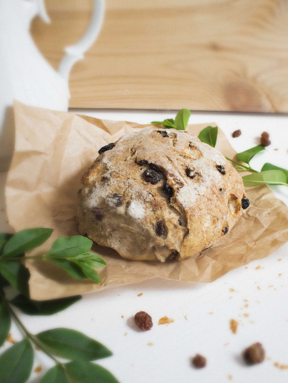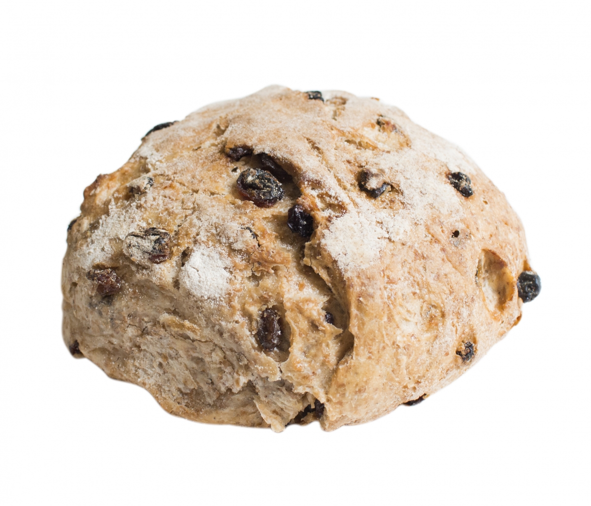 Organic little rye-wheat bread with homemade sourdough, raisins and currants. Baked on stone.Properties