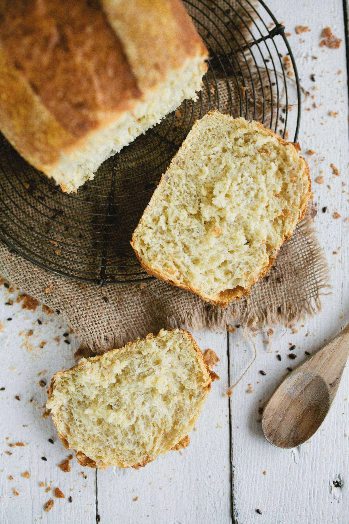 | appearance | rectangular shaped bread, yellow in colour with corn grits topping |