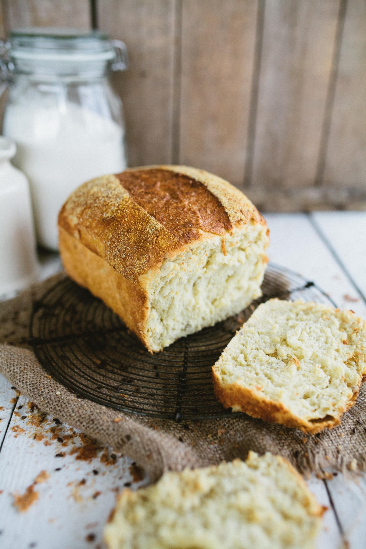 | appearance | rectangular shaped bread, yellow in colour with corn grits topping |