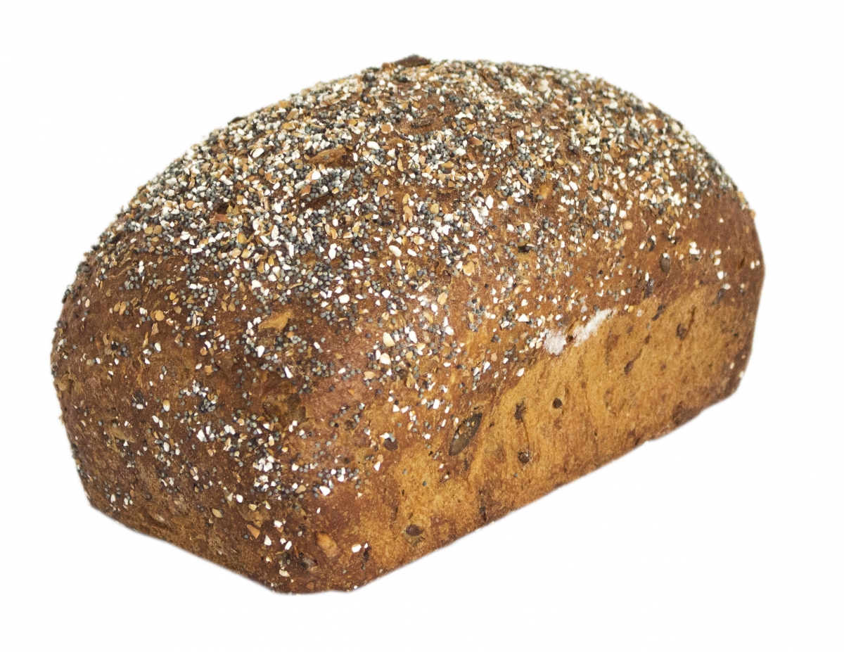 | appearance | brown bread with topping of poppy seeds and buckwheat |