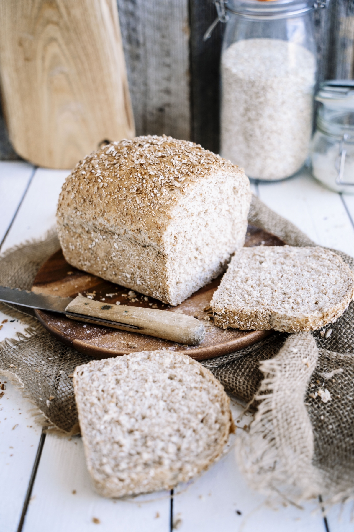 Organic whole grain bread based on stone ground milled 100% flour, soaked wheat flakes. Typical whole meal family bread.Properties