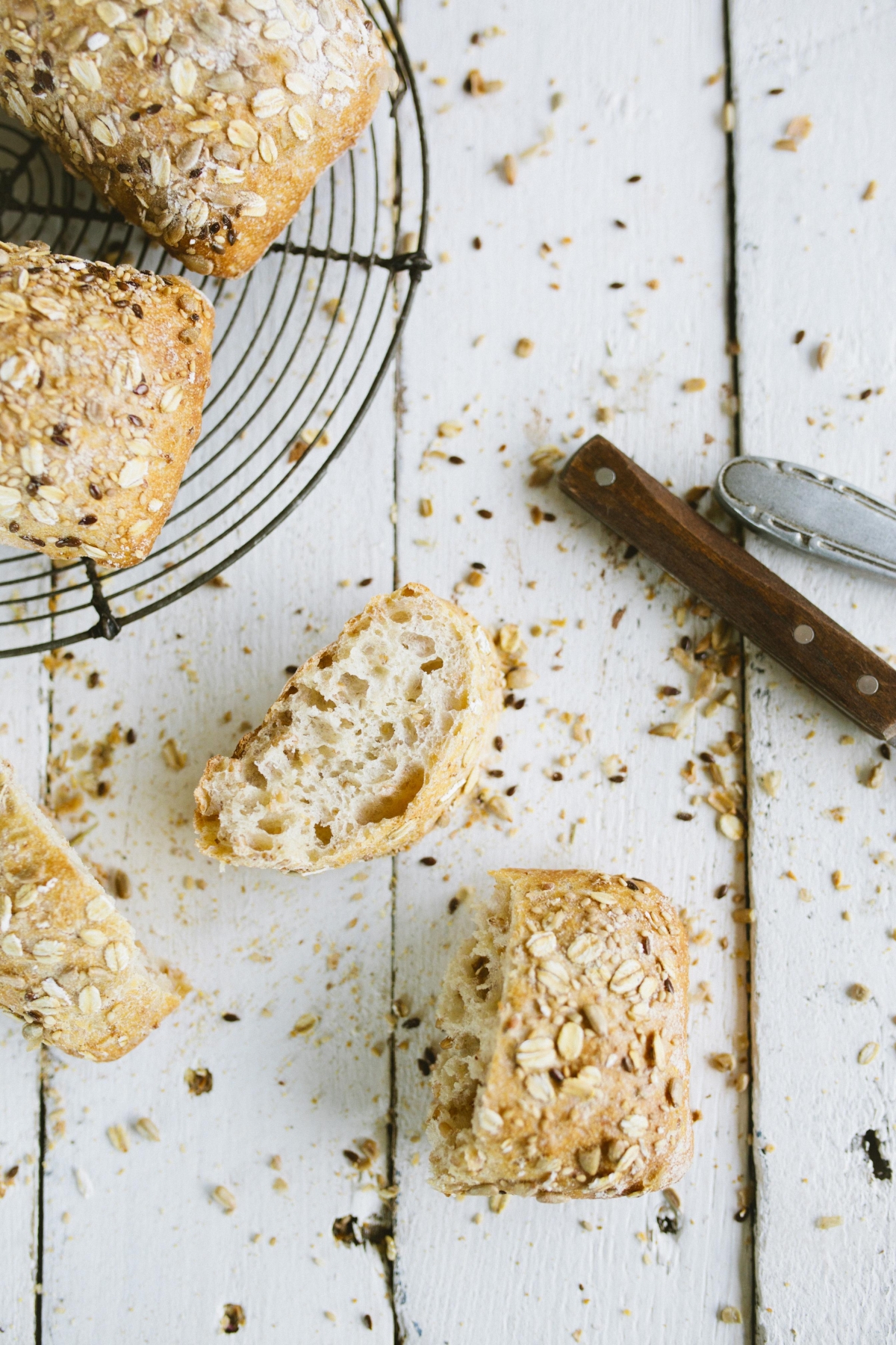 Biologisch meergranenbroodje met open structuur, afgewerkt met meergranentopping.Eigenschappen