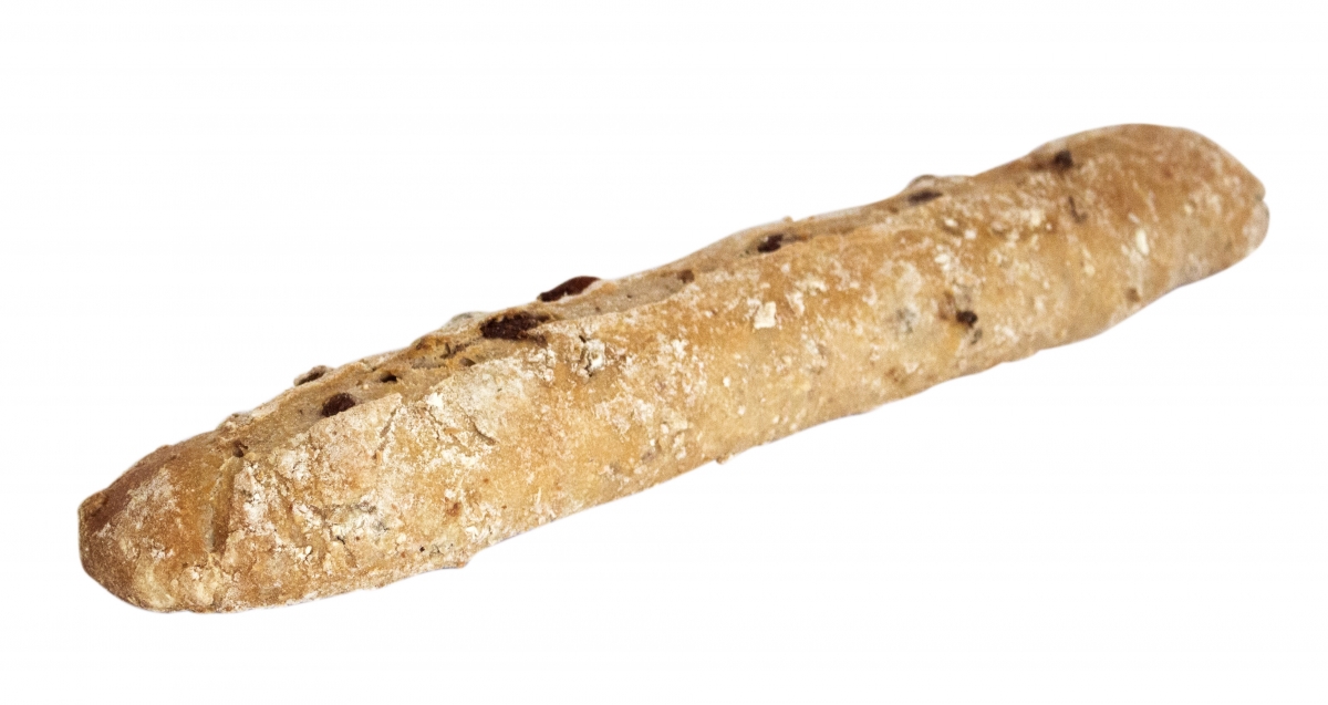 Een fijn stokbroodje met rozijnen en stukjes walnootEigenschappen
