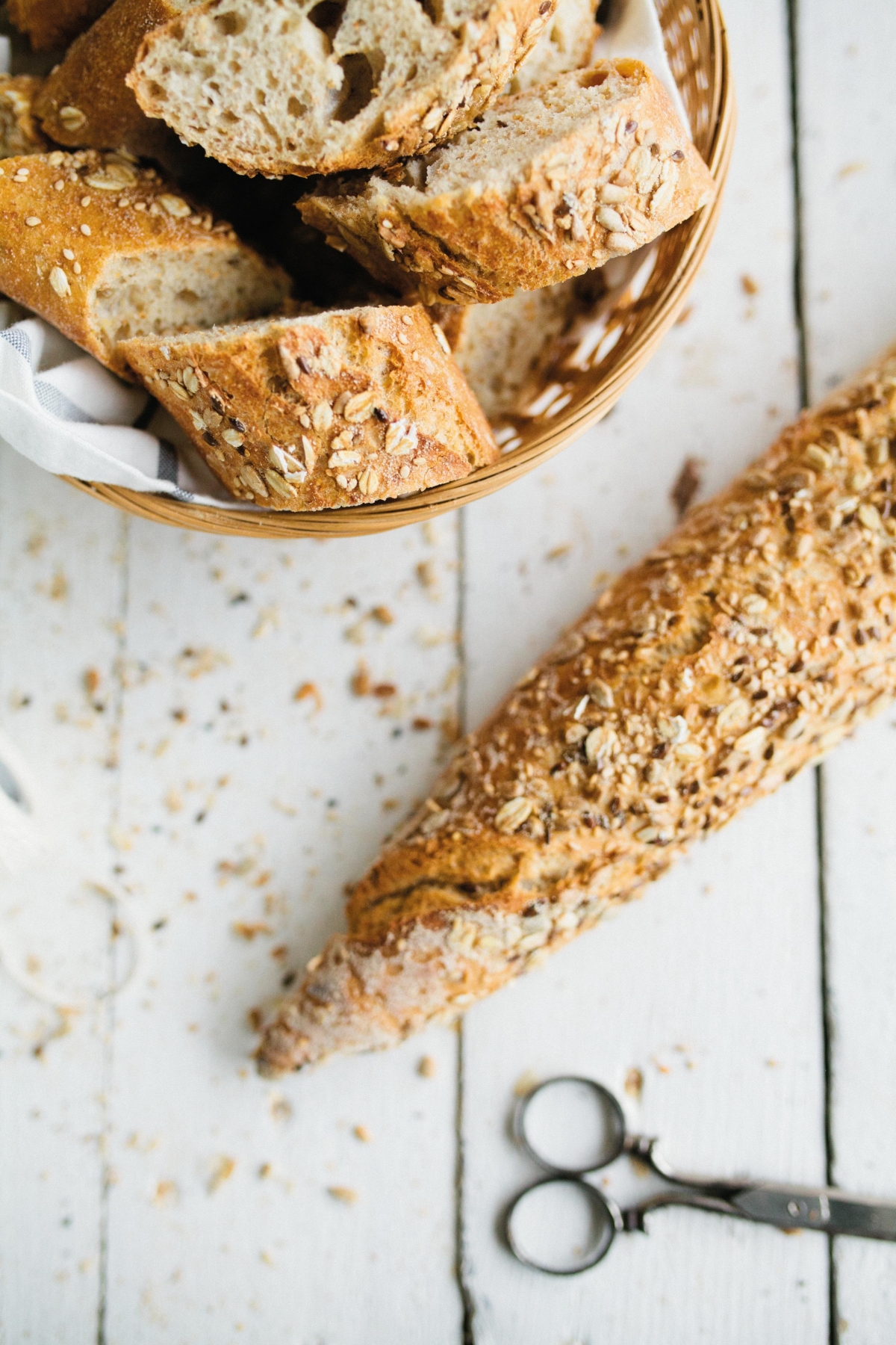 | uitzicht | Bruin stokbrood met meergranentopping |