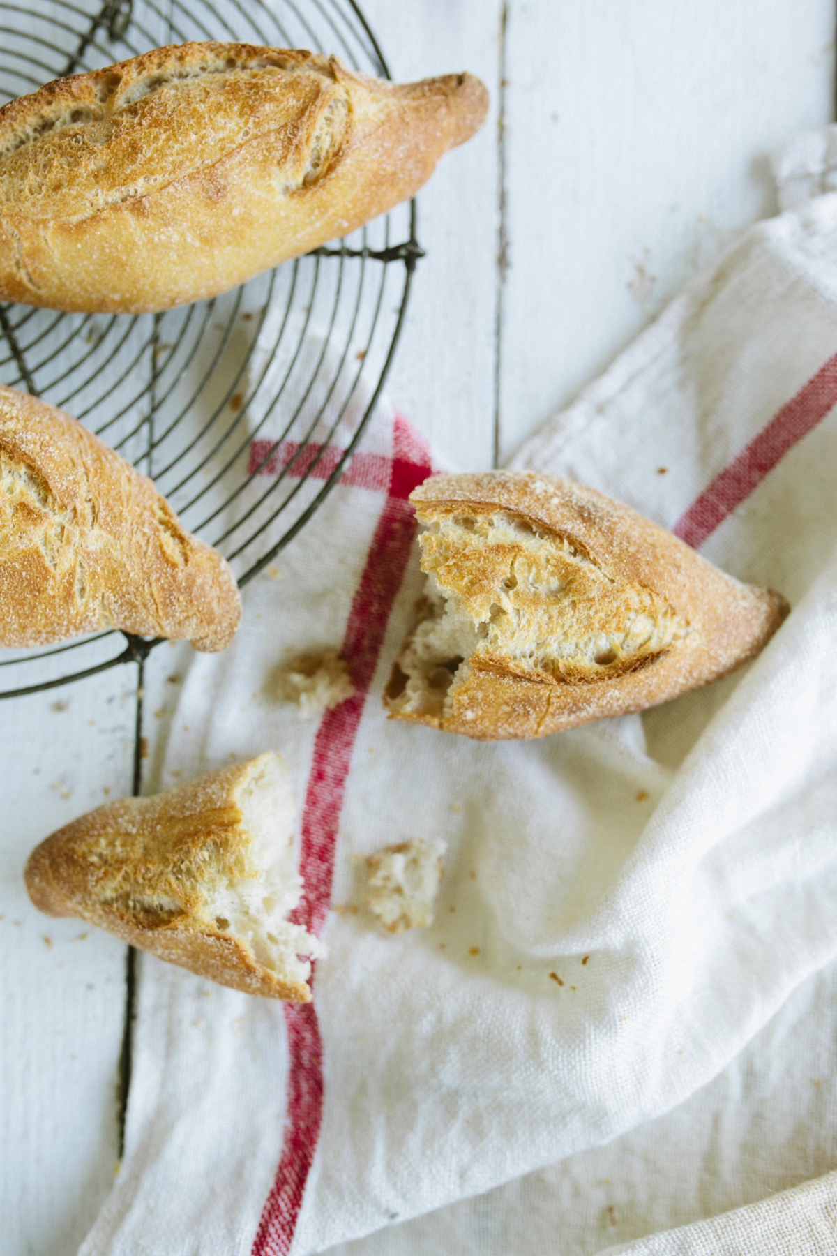 Luchtige mini baguette gemaakt met huisbereide desem en op stenen vloer gebakken.Eigenschappen
