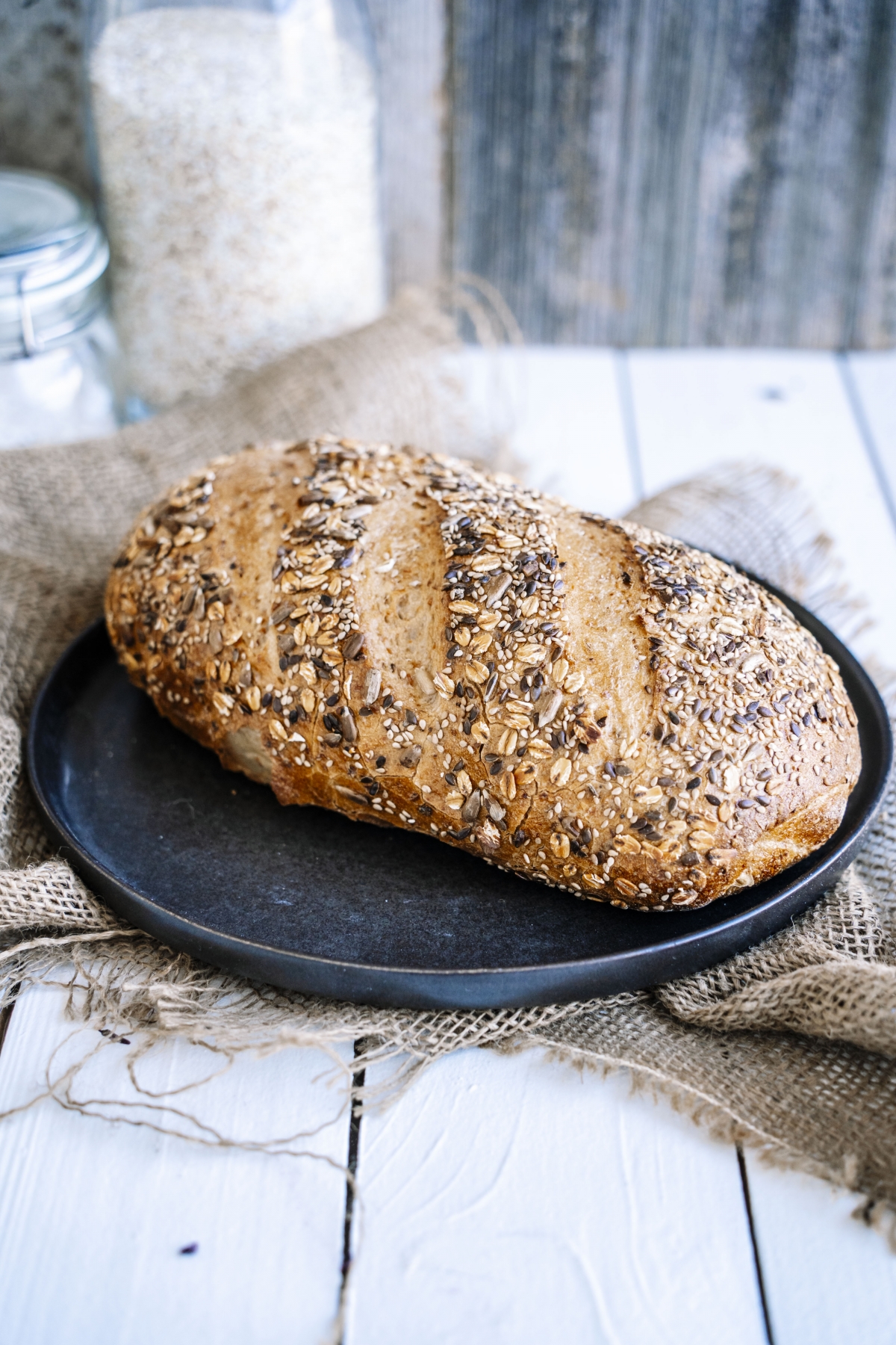 | uitzicht | ovaal, ambachtelijk, bruine korst, met granen topping |