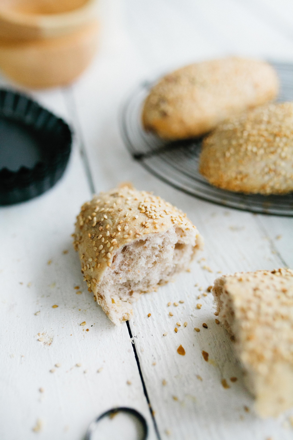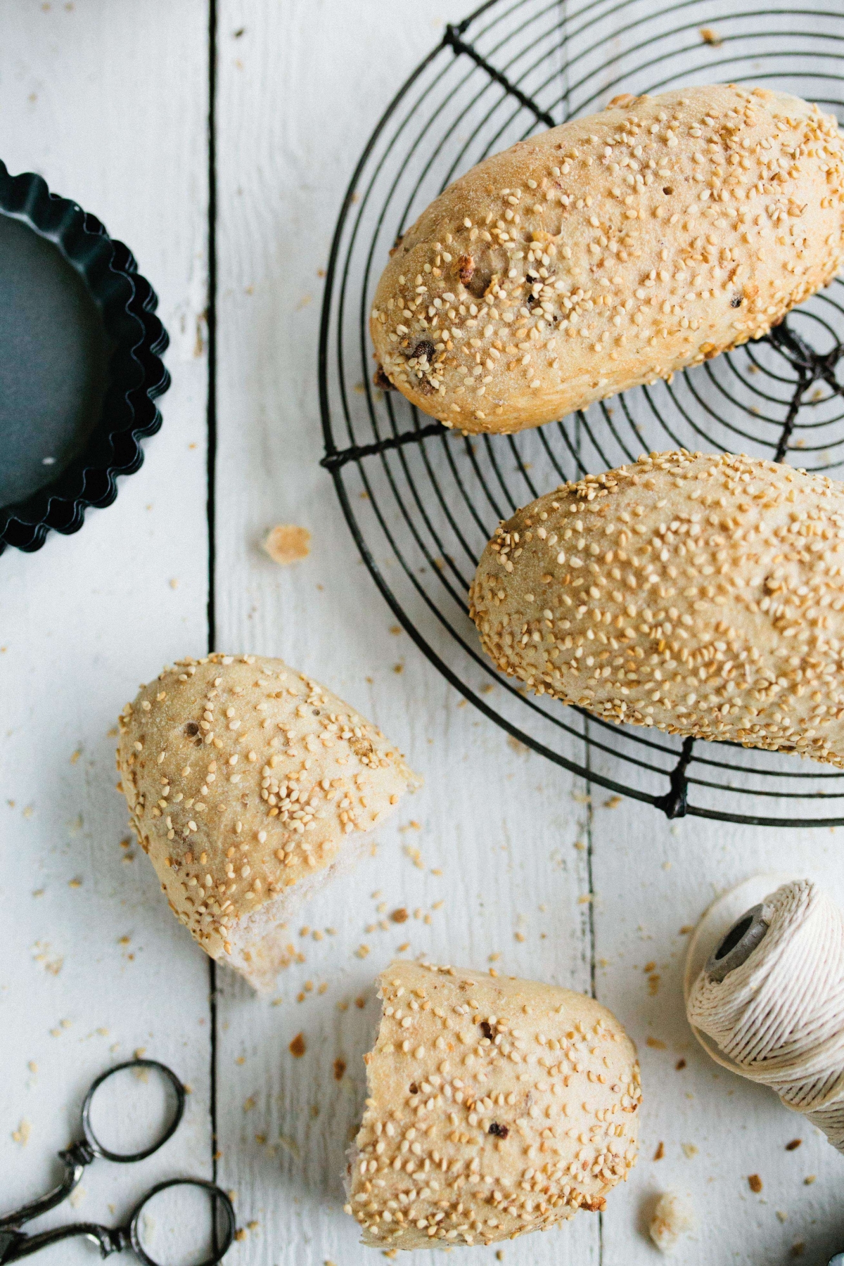 Zachte bruine pistolet met noten en topping van sesamzaadjesEigenschappen